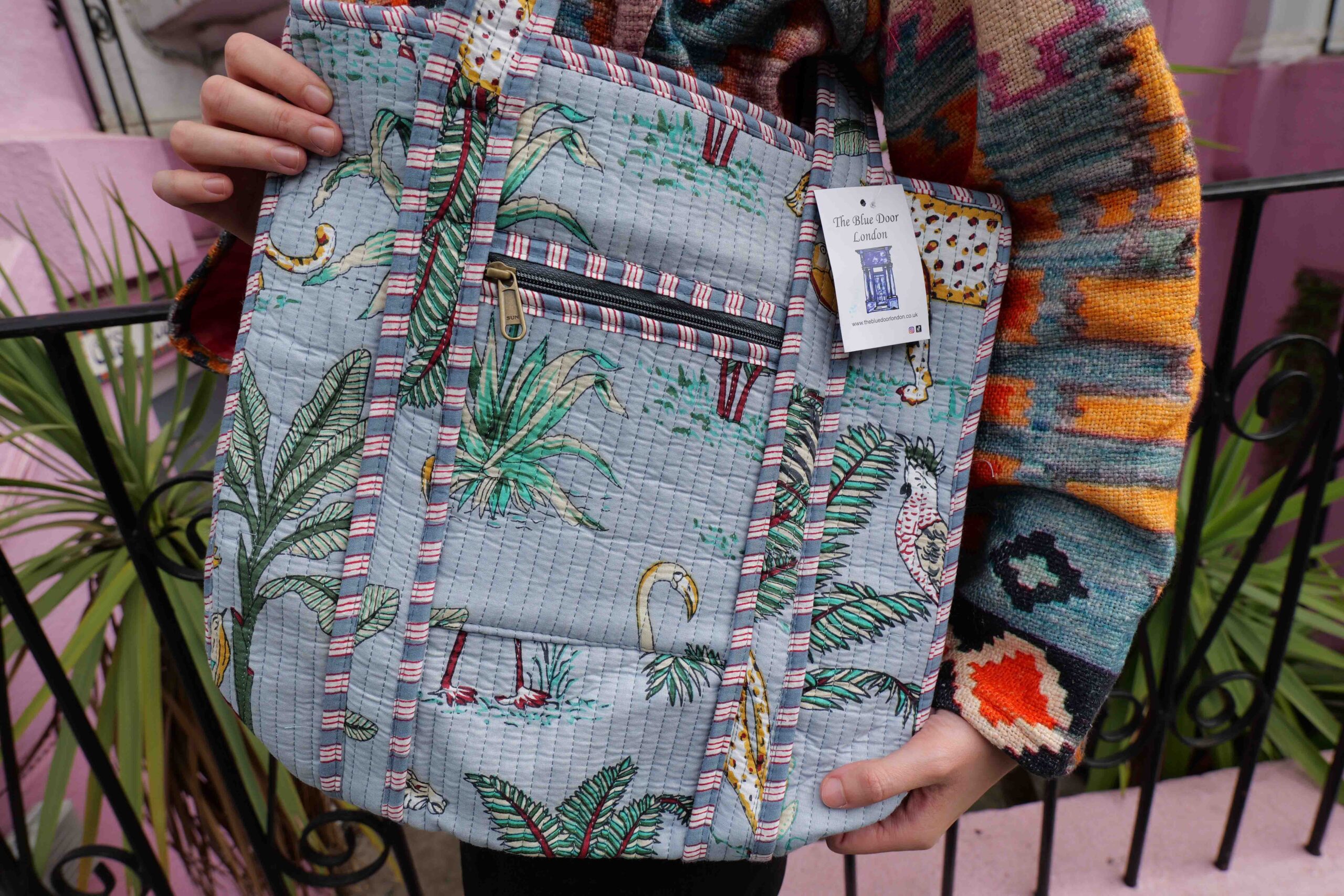 The Blue Door -Teal Fashion Bag-Full Handmade – 100% Cotton Outfit Design for outing, outdoor, summer and winter All Seasons